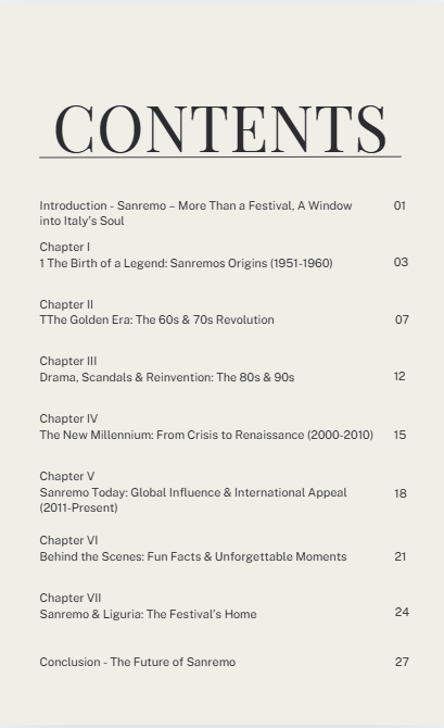 This ebook is an independent publication and is not affiliated with, endorsed by, or officially connected to the Sanremo Music Festival or RAI.